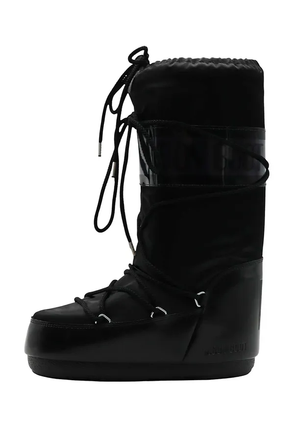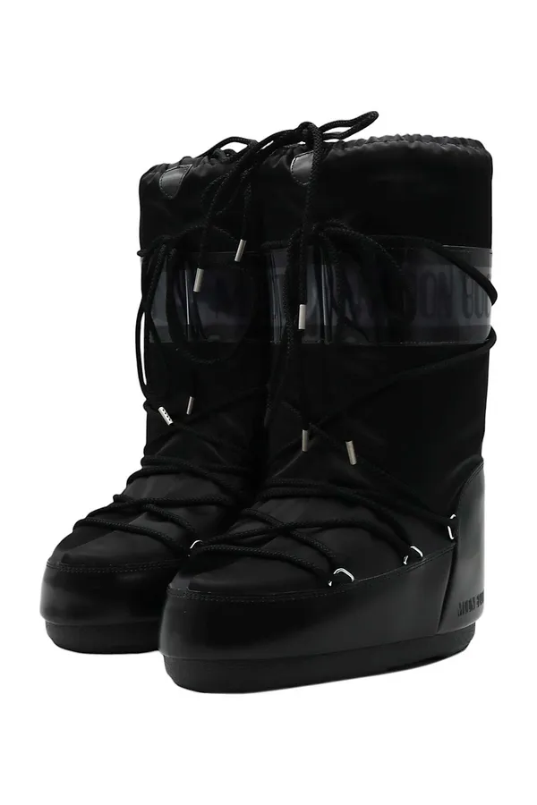МУНБУТЫ ICON GLANCE ЧЁРНЫЕ АТЛАС, ВЫСОКИЕ, ШНУРОВКА, ЛОГО-НАДПИСЬ