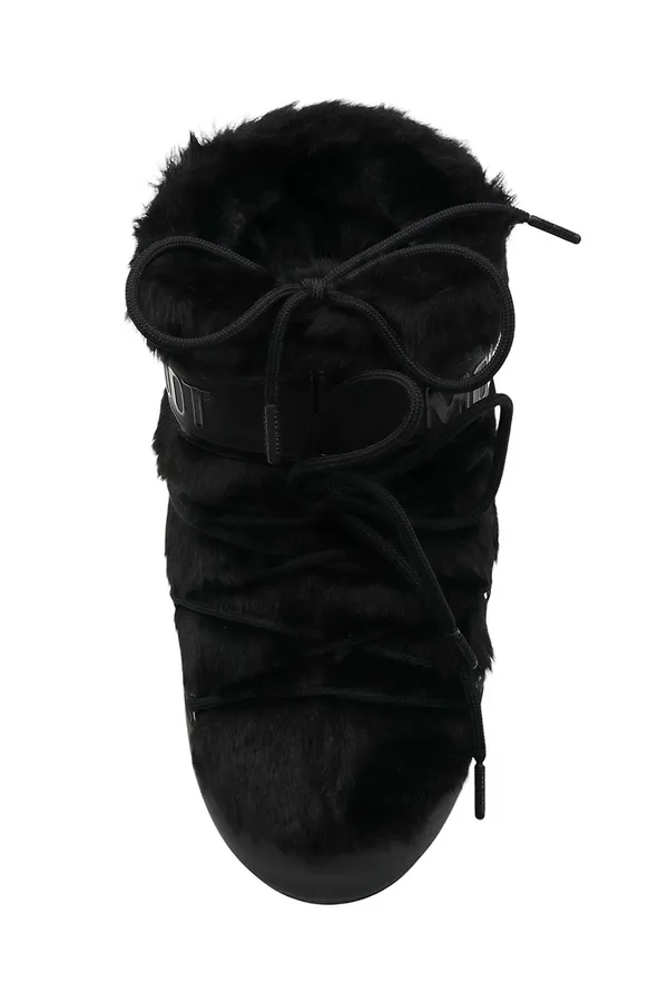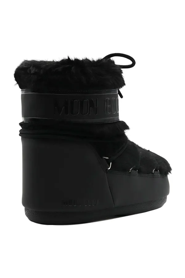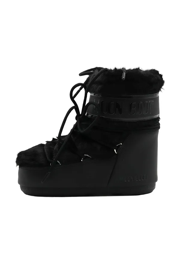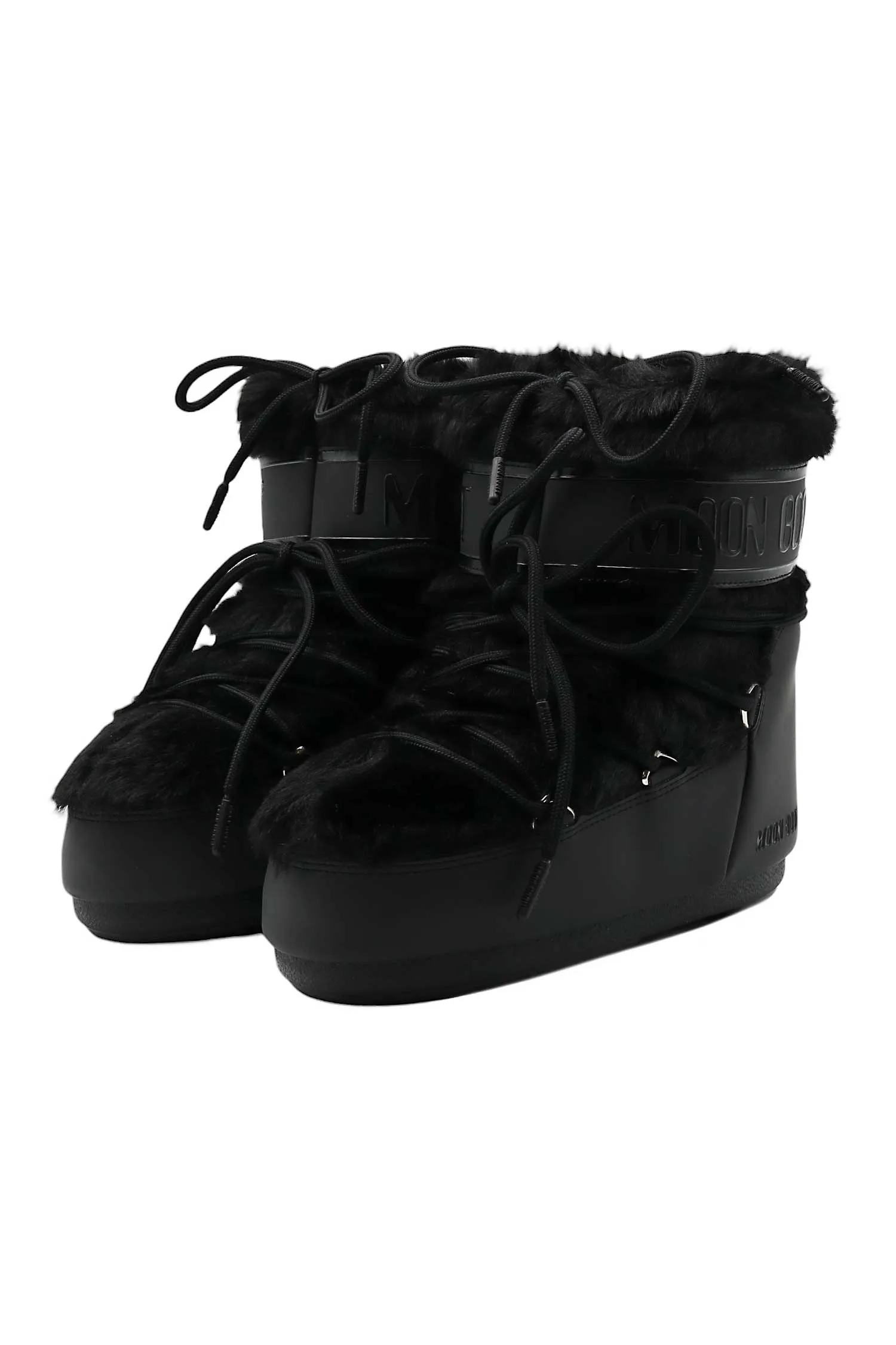 МУНБУТЫ ICON LOW FAUX FUR ЧЁРНЫЕ КОМБИНИР., ИСК.МЕХ+ИСК.КОЖА, НИЗКИЕ, ШНУРОВКА, ЛОГО-НАДПИСЬ В ТОН