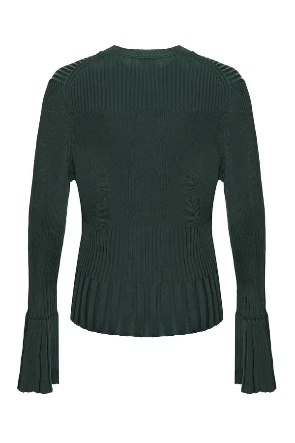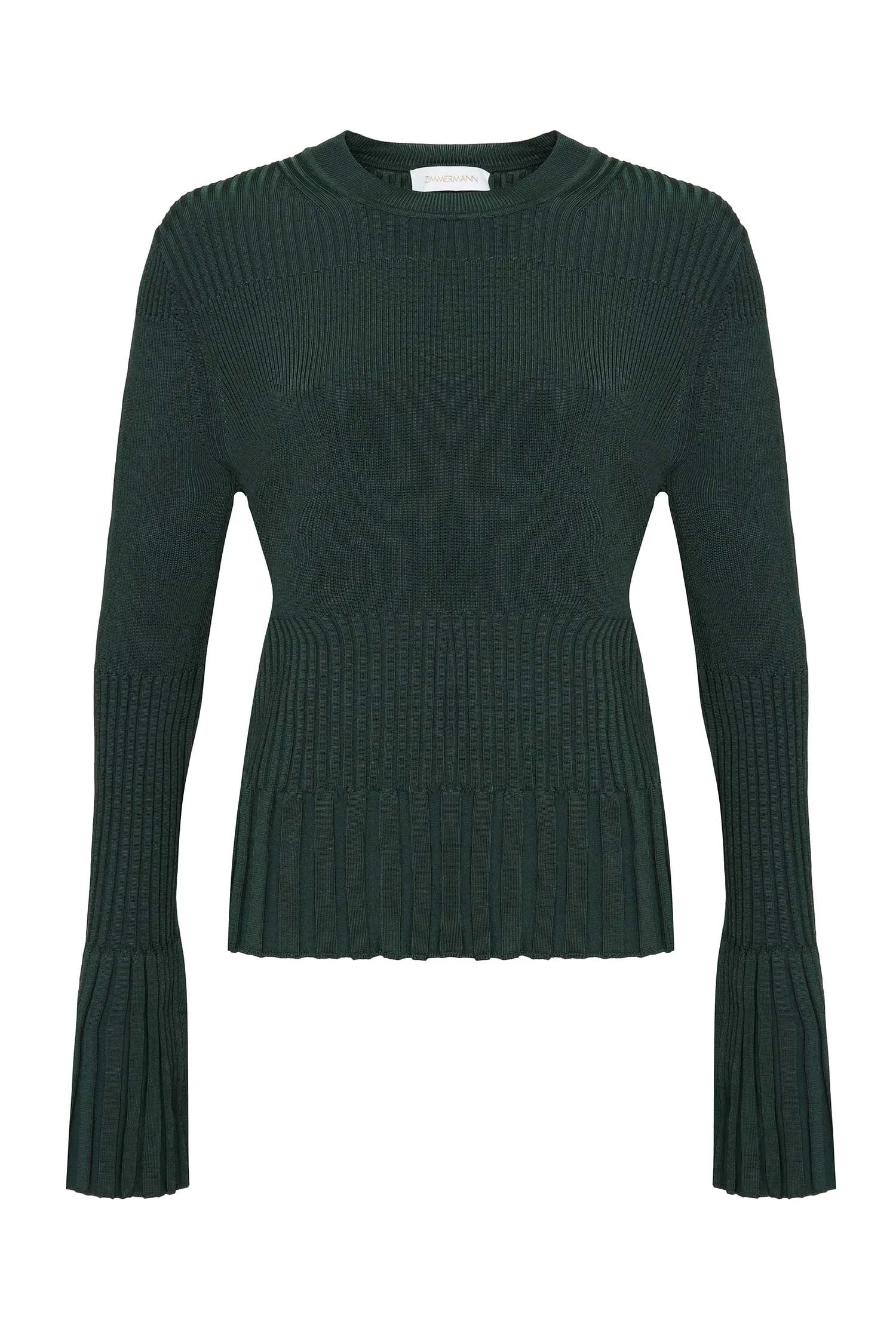 ДЖЕМПЕР Т/ЗЕЛЁНЫЙ В РУБЧИК, РУКАВА КЛЁШ